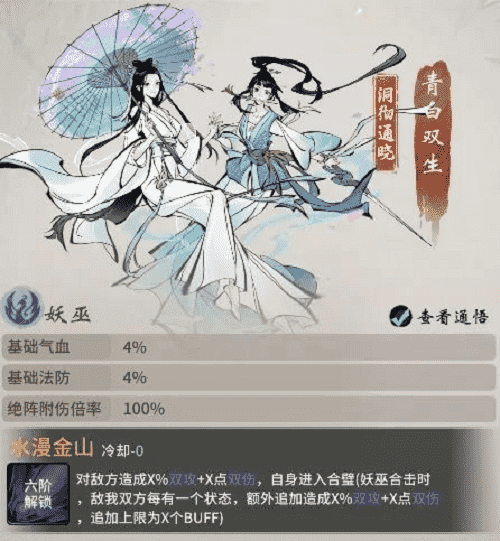 西湖踏春,,未曾想竟卷入到青白蛇故事中。。。。青蛇与白蛇本是修道有成的小妖,,,两人在西湖边上开了间医馆,,,,济世救民,,不料沾惹人世因果,,遭高僧误解。。。。白蛇被镇压于雷峰塔下,,,侥幸逃脱的青蛇则在三界奔波,,,只为早日寻得解救白蛇之法。。。。如今千年已过,,,高僧云游四海,,,雷峰塔封印松动,,,,而青蛇亦寻得强力古宝,,意欲趁此机会解救出姐姐……若仙友有幸与青白双生结识,,即可习得其绝技·水漫金山,,,对敌方造成双攻伤害,,于修炼大有助益。。