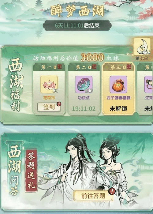 烟雨江南,,西湖三月,,,,宛若人间仙境,,正是如此,,,,修真界方才与之连通,,,共享两处风光。。。此番《一念逍遥》联动西湖景区,,,,西湖十景被“搬”进游戏中,,,,仙友在游春过程中,,,即可观赏到西湖奇景。。每日前往签到、、、、参与游湖活动、、进行莲鲤祈愿,,皆可获得奖励馈赠,,在这烂漫春日里,,,赏景、、修行两不相误。。。