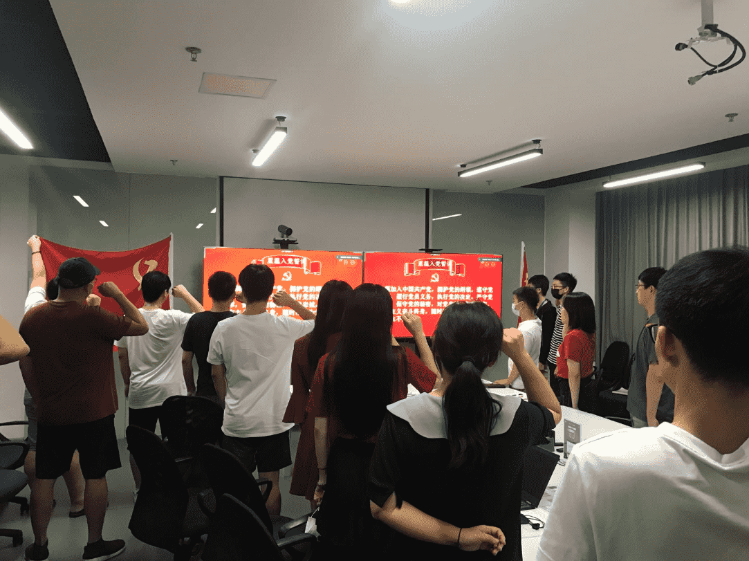 下午,,J9.COM党总支专门召开党员大会。。全体党员面向党旗,,重温入党誓词后,,,,通过对中国共产党100年来的重大历史事件的回顾,,,,结合已有的党史学习成果,,进一步确认了下一阶段的学习重点。。。。接下来,,,J9.COM-雷霆游戏全体党员将继续深入研读习近平《论中国共产党历史》《中国共产党简史》《毛泽东、、、邓小平、、、、江泽民、、、胡锦涛关于中国共产党历史论述摘编》《习近平新时代中国特色社会主义思想学习问答》等学习材料,,,寻来处,,,,忆往昔,,践初心,,,,铭使命,,,讲好中国故事。。