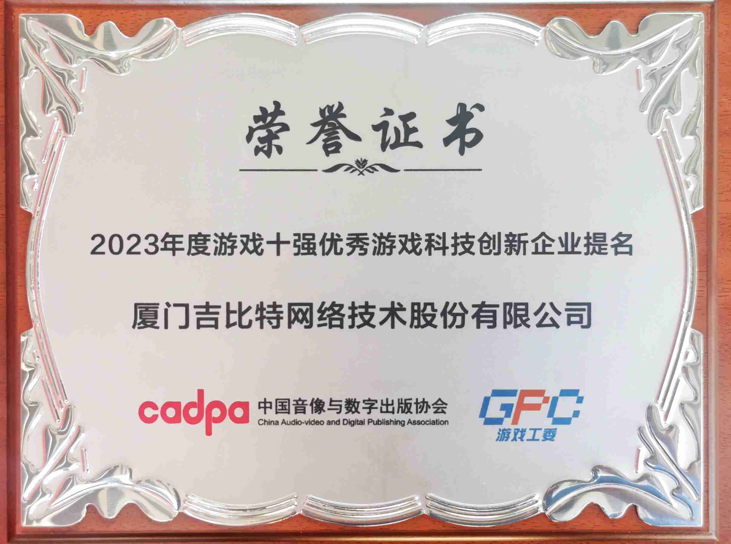 12月14日,,由中国音像与数字出版协会主办,,中国音数协游戏工委、、中国游戏产业研究院承办的“2023游戏十强”评选结果正式发布。。。“游戏十强”在我国游戏产业界享有“中国第九艺术封神榜”美誉,,其评选秉承公开、、公平、、公正的原则,,,因其代表性、、、、影响力、、公信力被誉为中国游戏产业最高奖项。。。。继2022年度入围后,,,,J9.COM今年再次获得“优秀游戏科技创新企业”提名,,,研发创新实力获得肯定。。。。